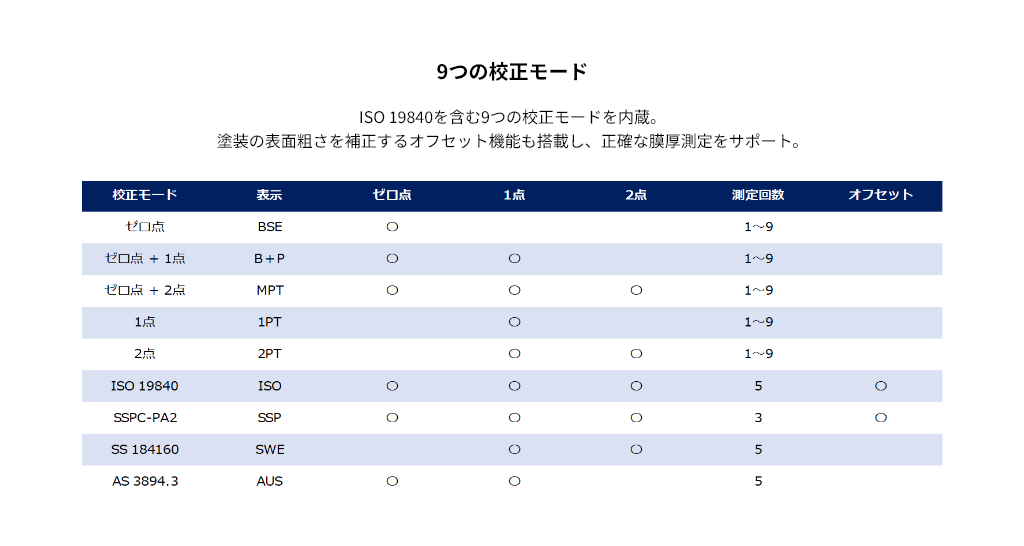 JIS K 5600-1-7、ISO 2178、ASTM D1400に適合。*詳細は仕様を参照